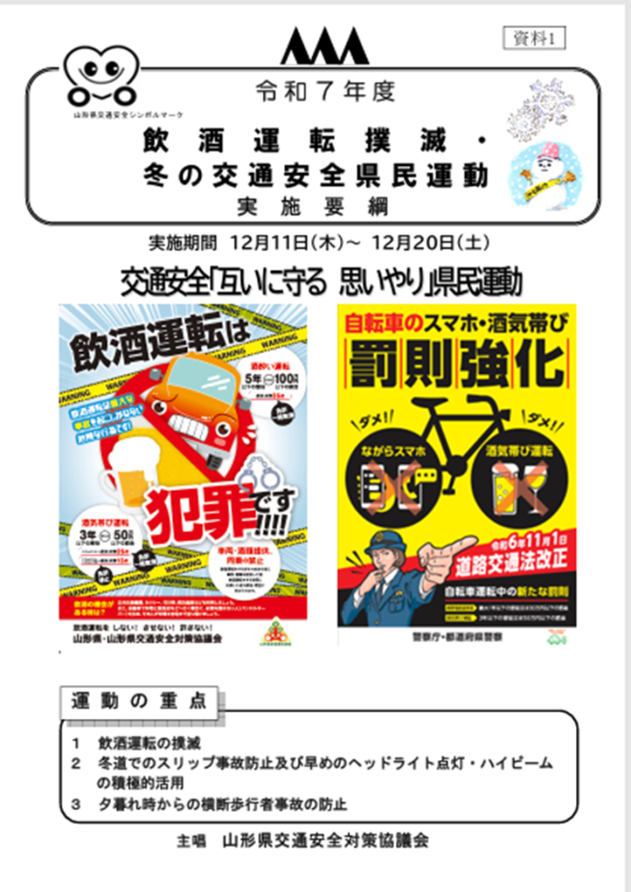 URL:令和7年度飲酒運転撲滅・冬の交通安全県民運動の実施について | 山形県